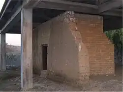 ![]() The Ruiz-Alvarado adobe, built 1824 at Rancho Los Peñasquitos, is now protected under a wooden shelter | |
