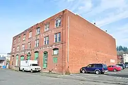 Meanwhile, the hardware company kept the name Frank Everett & Company and continued to grow. Everett's share was taken over by his previous partners, F. M. Power and A. C. St. Jones. By 1916, the main building was renovated and expanded, and the foundation for a three-story warehouse on Pacific Avenue was put in, covering the 100 ft × 120 ft (30 m × 37 m) piece of land.[8][6][7] By 1920, it was successfully operated by the Hansen-Scott Company. Its establishers, J. D. Hansen and W. E. Scott, had previously worked for Frank Everett & Company as vice-president and travelling representative.[9] In 1924, the Hansen-Scott Company's purchase of the Frank Everett & Company three-story warehouse was called "one of the largest real estate transfers in Chehalis."[10] As of 2020, this building, located at 546 Northwest Pacific Avenue, was featured on the official Chehalis history tour.[11]