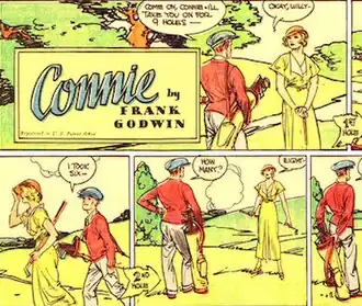Godwin's two major strips, seen over three decades, were Connie (Ledger Syndicate, 1927[5]–1944) and Rusty Riley (King Features Syndicate, 1948–1959). Most of Godwin's comic strips over the years were for the Ledger Syndicate, including Vignettes of Life (1924–1927); Connie (1927–1944); Babe Bunting (1930–1939); The Wet Blanket (c. 1933–c. 1941); War on Crime (1936–1938); and Roy Powers, Eagle Scout (1938–1940).[6] Godwin stepped in to replace illustrator Kemp Starrett on writer Paul Powell's daily strip Roy Powers, Eagle Scout ("the official strip of the Boy Scouts of America"), continuing until 1942.[7]