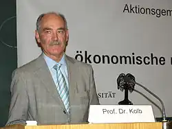Frank Kolb (born 27 February in Rheinbach, Rhine) is a German professor of ancient history at the University of Tübingen in Germany. He has been involved in a controversy over findings concerning the late Bronze Age in Troy, and in 2001 accused Dr. Manfred Korfmann, the professor at Tubingen who had been leading excavations at the archaeological site of Troy since 1988, of deliberately misrepresenting his findings there. Kolb believes Troy was not an important city, but Korfmann (and others) had suggested that it was a significant trade centre. A subsequent two day conference at the university in February 2002, attended by more than 800 people, with a subsequent long reassessment of Korfmann's evidence by bronze age specialists supported Korfmann's findings. Kolb continued to disagree.