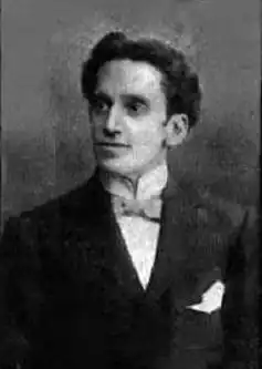 Like so many 19th- and early 20th-century actors who made their living traveling from town to town often under assumed stage names, Frank Lawton's past is difficult to trace. What evidence does exist indicates he was an American born in the late 1850s,[2] probably at Hartford, Connecticut.[1] Some sources state his birth name was Frank Mokeley, a claim that seems to date back to a 1933 New York Times article about his son, film actor Frank Lawton.[3] This may be true, though it has proven difficult to locate any public record or contemporary newspaper article that supports this assertion. In later editions of Who's Who in the Theatre, his full name is listed as Frank Mokeley Lawton.[4]