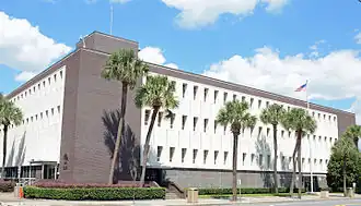 The Frank M. Scarlett Federal Building is a federal building of the United States located at 805 Gloucester Street in Brunswick, Georgia. Completed in 1959, it houses both a United States Post Office and operations of the United States District Court for the Southern District of Georgia. In December 1973, Senator Herman Talmadge introduced a bill in the United States Congress to rename the facility for segregationist[2] district court judge Francis Muir Scarlett; this bill was passed into law on January 2, 1975.[3] The building was added to the National Register of Historic Places in 2014. The east side of the building was remodeled in 2015-16.