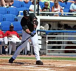 Thomas signed with the Oakland Athletics to a one-year, $500,000 deal with incentives on January 26, 2006.[22] The Athletics installed Thomas as their everyday DH. He started the season slowly, hitting .178 through May 20,[23] but ended the season as the team leader in home runs, RBI, slugging percentage, and on-base percentage.[24] He provided a powerful right-handed bat in the middle of the lineup for the division-leading Athletics. He had a stretch from September 5 to September 11 where he hit a home run in six straight games.[23]