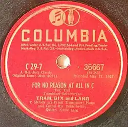 - "For No Reason at All in C" with Bix Beiderbecke (1927), which was released as a single 78 on Okeh and subsequently reissued on Columbia and Parlophone.
