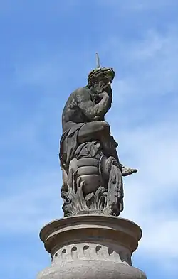 - 1718 – cattle market, Mechelen: ' fountain of Neptune', a monumental city pump with a pedestal sculpted by Frans Langhemans on a commission by the municipal council. Willem Egidius van Buscom added in the late 18th-century on the pedestal the letters 'SPQM' (abbreviated Latin for Senatus Populusque Mechliniensis ), which means 'Government and People of Mechelen'. The statue is also known as ' Vadderik ', or sloth.