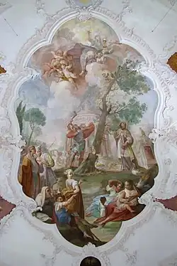 He was in Rome from 1742 to 1744 then, following a brief visit to Bologna, lived in Venice from 1744 to 1749. While in Rome, he worked with Corrado Giaquinto and copied some of the Old Masters. His personal notes of his time there have been preserved.[1] He also copied works in Venice, and was especially impressed by Titian. After returning home, he again worked for Göz; assisting him with a ceiling fresco at the Wallfahrtskirche Birnau. Later, he became involved in creating a large cycle of paintings at Kaisheim Abbey.[2]