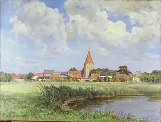 Beginning in 1892, he spent the summers in his home town of Schwaan and founded an art colony there. Every year, some of his students would accompany him and engage in plein-air painting. Occasionally, his fellow artists from the Academy would join him.[1]