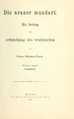 - ^ Finck, Franz Nikolaus (1899). Die araner mundart: ein beitrag zur erforschung des westirischen (in German). N. G. Elwert'sche Verlagsbuchhandlung.