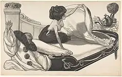 Franz von Bayros (28 May 1866 – 3 April 1924) was an Austrian commercial artist, illustrator, and painter, best known for his controversial Tales at the Dressing Table portfolio.[1] He belonged to the Decadent movement in art, often utilizing erotic themes and phantasmagoric imagery.[2]
