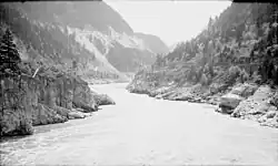 Just north of Lillooet, narrow rock ledges choke the river just at the confluence of the lower canyon of the Bridge River, forming an obstacle to migrating fish that has made this spot the busiest aboriginal fishing site on the river, from ancient times to the present. Concentrations of First Nations people here, from all tribes of the Interior, were believed to have been in excess of 10,000.