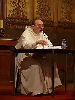 The fraternity was founded in 1979 by Louis-Marie de Blignières and was initially sedeprivationist, but later reconciled with the Holy See and became a religious institute of pontifical right on 30 November 1988.[1] The fraternity's priests use the traditional Dominican Rite for saying Mass and the hours of the Divine Office and are authorized to use the Dominican constitutions and habit, due to an indult granted to them in 1988.[2][3] It is not a part of the Dominican Order.