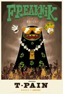 Freaknik: The Musical is an American animated musical television special produced by T-Pain. It features the voice of T-Pain as the Ghost of Freaknik. Other entertainers providing voices include Lil Wayne, Young Cash, Snoop Dogg, Sophia Fresh, and Rick Ross, and comedians such as Andy Samberg and Charlie Murphy.