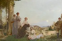 Fred Appleyard is known chiefly for his scenes depicting families of obviously substantial means in outdoor settings, often incorporating ruins in his compositions. He used a dappling technique which was ideally suited to his frequent depiction of sunlight broken through trees. He was also fond of incorporating children into his work.