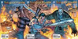 Freddy vs. Jason vs. Ash is a six-issue comic book limited series that was released in November 2007 and ran until March 2008. It was published by Wildstorm (DC Comics) and Dynamite Entertainment.[1][2] Based on the original Freddy vs. Jason 2 film treatment by Jeff Katz, the story serves as a sequel to Freddy vs. Jason and the Evil Dead trilogy.[3] The comic book series was written by James Kuhoric and illustrated by Jason Craig.