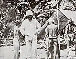 After World War I and until his death, Burlingham continued to re-edit and release in the United States his past films like The Ascent of the Matterhorn, Mont Blanc, and Descent into the Crater of Vesuvius. He also traveled to new destinations to shoot footage for fresh releases. From late 1919 through 1920, he ventured to Southeast Asia to explore and film the landscapes and native peoples of that region, including the Dayak culture of Borneo and areas in that island's interior "never explored before" or documented by Westerners.[13][14] Burlingham was back in the United States by 1921. Later that year he began releasing bi-monthly through Truart Film Corporation installments of a series of 26 one-reel "Burlingham Adventures" produced from his most recent travels, beginning with The Wild Men of Borneo, The Lure of the South Seas, The Island of Surprise, A Borneo Venice, and Monkey Land Up the Barito River.[15] Before and after his trip to Borneo, he also filmed excursions to various locales in the United States and Canada, to sites such as Niagara Falls and the Suwannee River that runs from southern Georgia into Florida.[13] Burlingham during the last three years of his life continued to produce and release more travelogues from his large film collection, presented lectures about his expeditions, worked on a book about Borneo, and wrote articles for The National Geographic and other science and film publications.[16][17]