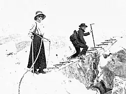 At the time British and Colonial hired him, Burlingham already had experience as a mountaineer. He had traveled to the Alps and was familiar with members of the French and Swiss mountain-climbing communities, which included his future wife Léontine, whom he met in Paris and married in London in 1912.[8][9] He shared memories of some of his climbs in a volume he published in London in 1914, How to Become An Alpinist.[10] In addition to being a basic guide on mountaineering, the book also features a chapter that introduces readers to the "galaxy" of women climbers in the sport and to their accomplishments in that period.[11]