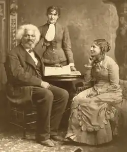 Anna Douglass remained a loyal supporter of her husband's public work. His relationships with Julia Griffiths and Ottilie Assing, two women with whom he was professionally involved, caused recurring speculation and scandals.[64] Assing was a journalist recently immigrated from Germany, who first visited Douglass in 1856 seeking permission to translate My Bondage and My Freedom into German. Until 1872, she often stayed at his house "for several months at a time" as his "intellectual and emotional companion".[65]
