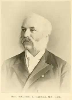 Sir Frederick Eustace Barker, KC (27 December 1838 – 15 December 1915) was a Canadian lawyer, judge and politician. He was in office for 2 years.