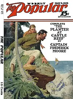Moore was a prolific writer of pulp fiction and penned more than 160 short stories in his career, most frequently with the byline of Captain Frederick Moore. His stories were featured in the "Big Four" of pulp magazines: Argosy, Adventure, Blue Book and Short Stories. The majority of these were stories of the South Seas or military life.[26]