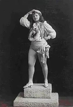 Before her vaudeville days Fuller was on the legitimate stage in productions like the burlesque musical Adonis, by Edward E. Rice and William F. Gill, and Rice's Evangeline, in which she replaced Fay Templeton when the actress was unavailable.[10] The highlight of her career came in 1895 when Hallen bought the rights to the play The Twentieth Century Girl and cast her in the title role.[3][11]