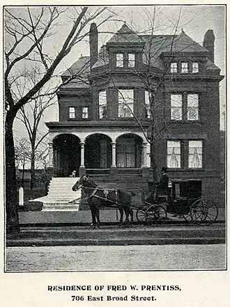 2. ^ a b Cynthia Hunt/Kathy Mast Kane (September 1981). "Ohio Historic Inventory: Frederick Prentiss House". National Park Service. Retrieved January 11, 2021. (Included within East Broad Street Multiple Resource Area nomination, reference number 64000619).