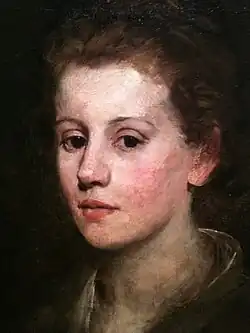 In 1877, Freer traveled across Munich, Paris, the Netherlands, and Italy. While in Munich, he befriended fellow painter Frank Duveneck; on multiple occasions, the two portrayed each other, or painted the same subject together. In the summer of 1879, Freer stayed in Polling, Prussia, with Duveneck and Joseph Frank Currier, where he often painted the Bavarian landscape; this was followed by yearlong stay in Paris.[1] In 1880, he briefly returned to Chicago and held an unsuccessful auction of his work before relocating to New York.[1][4] There he became a member of clubs such as the Society of American Artists and began to exhibit his work with art societies and academies in New York, Boston, Philadelphia, and Chicago, among them the Society of American Artists, the National Academy of Design, and the Pennsylvania Academy of the Fine Arts.[1] During this time, he also developed an interest in alternate art media, like watercolor and etching, dedicating a large amount of time to the two crafts.[2]