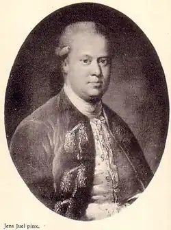 The town of Bagsværd was separated from the Frederiksdal estate in 1735, and in 1739 Frederiksdal was put at the disposal of Johan Sigismund Schulin (1694–1750), a close friend of the royal family who had been ennobled by the crown in 1731 and received a number of prominent appointments since Christian VI's ascension to the throne in 1730.[4][1] On 30 December 1743, Schulin was permanently granted ownership the property from the king.[4][1][5] He charged royal architect Niels Eigtved with the design of a summer residence.[4] Construction began in 1744 and was completed in 1747.[5] Schulin was made a Count in 1750, but died later that same year.[4]