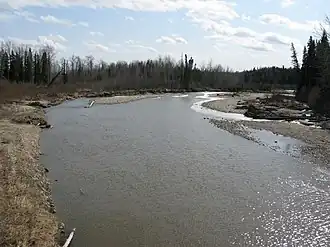 The river flows in a southeastern direction for much of its course. It flows through a significant petroleum and natural gas field near the town of Swan Hills, before being bridged by Alberta Highway 32. The river then runs parallel to Alberta Highway 33, takes on the Morse River, and joins the Athabasca River near Fort Assiniboine.