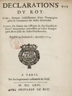 Declaration establishing a company for trade with the West Indies, 1664