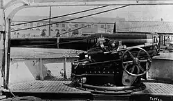 The ship was armed with a main battery of four 164.7 mm (6.48 in) M1881 28-caliber guns that were placed in sponsons on the upper deck, two per side. These were supported by a secondary battery of twelve 138.6 mm (5.46 in) M1881 30-caliber guns, ten of which were placed in a central gun battery on the main deck. The remaining two 138.6 mm guns were located aft. For close-range defense against torpedo boats, she carried a tertiary battery of a single 47 mm (1.9 in) gun and ten 37 mm (1 in) Hotchkiss revolver cannon. Dubourdieu was also fitted with two 350 mm (13.8 in) torpedo tubes in above-water mounts, one on each broadside. The ship carried a pair of 65 mm (2.6 in) field guns that could be sent ashore with a landing party.[5][7]