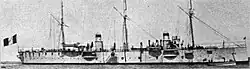 Infernet was built at the Forges et Chantiers de la Gironde shipyard; her keel was laid down in December 1896.[3] The ship was launched on 7 September 1899, having already had her propulsion machinery installed,[5][6] and she was completed in 1900.[3] She was slated to be deployed to the Pacific, where she was to join the protected cruiser Protet and the transport vessel Aube.[7] But the completion of her sea trials was delayed until later that year; during speed tests, she reached a top speed of 21 knots (39 km/h; 24 mph), exceeding her contract speed by half a knot.[8] The ship was named for Captain Louis-Antoine-Cyprien Infernet, a French naval officer who had seen action at the Battle of Trafalgar in 1805.[9]