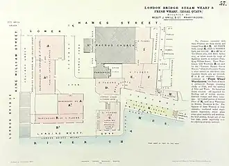 - ^ a b Loveday, James Thomas (1857). Loveday's London Waterside Surveys: For the Use of Fire Insurance Companies, Showing Wharves and Granaries with the Buildings Connected on the Banks of the Thames from London Bridge to Rotherhithe [and] Tower Dock. The Author. p. 57.