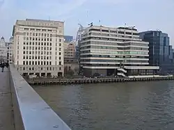 Fresh Wharf was a wharf located in the City of London close to London Bridge, on the north bank of the River Thames.[1] The site was used as a quay in Roman times and later as an unloading place for Anglo-Saxon boats. A wharf was constructed there at some point in the medieval period and appears to have acquired its name from its customary usage as a landing place for fresh fish. In the 16th century, Fresh Wharf was made a "Legal Quay" authorised for the import of certain goods during the reign of Queen Elizabeth I of England. It expanded as London's river-borne trade grew in the 18th and 19th centuries, with large warehouses being established immediately behind the wharf. In the 20th century, the wharf's owners took over the adjoining wharves immediately upstream and downstream, built a new ten-storey warehouse and renamed the site New Fresh Wharf. By the end of the 1960s, however, London's docks had fallen into disuse with the advent of containerization, for which they were not suited, and the wharf was closed down in 1970. An office block was built on the site of the warehouse in 1977 and the former quayside is now part of a public footpath along the Thames.