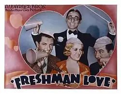 Freshman Love is a 1936 American musical comedy film based on George Ade's oft filmed 1904 play The College Widow, adaptations of which were filmed twice previously, in 1915 and 1927, and parodied by the Marx Brothers in their 1932 film Horse Feathers. This version is directed by William C. McGann and is a comedy-musical starring Patricia Ellis.[1]