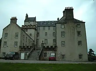 The castle was originally named Freuchie (from 'Fraoichaich', Scottish Gaelic descriptor for being of or abounding in, Heather) Castle and James Grant of Freuchie supported James V of Scotland.[1]
