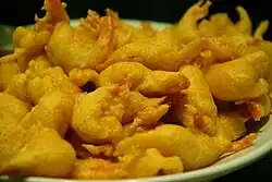 Batter-coated and deep-fried shrimp, usually cooked in vegetable oil[5][6] |