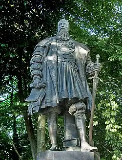 He is buried in his hometown. Several of his works are there, including a "Soldiers' Monument" (1877), an equestrian statue of Kaiser Wilhelm I (1892), and a bronze statue of "Otto von Bismarck" (1900).