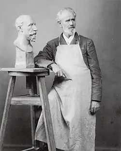 He was born to a long-established family of craftsmen. His father was a master carpenter. Initially, he was going to follow him into the carpentry trade, but his artistic talents were noticed by the sculptor, August Kiss, who advised him to go to Berlin to study. There, he attended the Prussian Academy of Arts until 1867, after which he worked at the studios of Albert Wolff, whom he assisted on an equestrian monument to King Frederick William III.