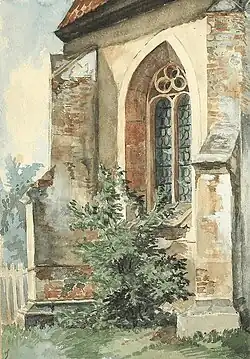 - Motiv einer Kapelle mit Fenstern, Aquarell