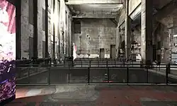 The first construction phase was the boiler house. The boiler house is now used for art exhibitions as a Halle am Berghain.[12] The southern half of the boiler house ground floor is occupied by the queer sex club Lab.oratory. The second building phase included the turbine and generator house. The turbine and generator house is now occupied by Berghain and Panorama Bar as well as the club Säule. The Berghain dance floor is the former turbine hall.[13] Panorama Bar is located in the former control room. Thomas Karsten: "It was clear from the start where the 'Panorama Bar' should be: the power plant's former control room with its large windows."[3] The club Säule is located in the northern part of the turbine and generator house ground floor, between the Berghain cloakroom area and Lab.oratory.