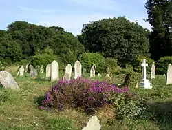 The Robert Pearce family grave is marked by a sculpture depicting the figures of Faith, Hope and Charity, surmounted by a draped urn. The memorial was sculpted by Richard Cockle Lucas from Chilworth and is English Heritage Listed, Grade II.[8] Captain Thomas Richard Pearce (1859–1908) survived three shipwrecks.[9]
