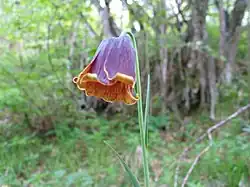 Fritillaria pyrenaica is a species of flowering plant in the lily family Liliaceae, native to the Pyrenees in Spain and France.[2] Common names include Pyrenean fritillary[3] and Pyrenean snake's-head.[4] It is a bulbous perennial growing to 45 cm (18 in). The pendent, bell-shaped flowers are borne in spring. They have recurved tepals[5] which are purple tinged with brown and yellow.[2] Like other species in this genus, notably F. meleagris, they are strongly chequered.[5]