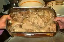 Frittole di maiale (in Calabrian dialect frittuli, rarely in the singular frittula) is a traditional dish made of pork parts in the city of Reggio Calabria and the surrounding province. Curcùci is also made in the preparation process. Frittola (frittula in Parlemitan dialect) is a similar dish eaten in Palermo, Sicily, made from calf instead of pork.