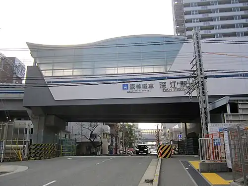 Fukae Station (深江駅, Fukae-eki) is a railway station in Higashinada-ku, Kobe, Hyōgo Prefecture, Japan. It is owned and operated by private operator Hanshin Electric Railway.