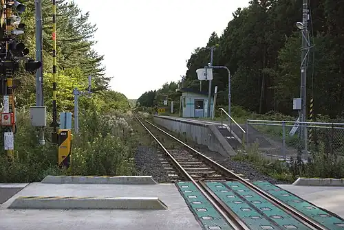 The station has one ground-level side platform serving a single bidirectional track. There is no station building, but only a small rain shelter for passengers on the platform. The station is unattended.[2][1]