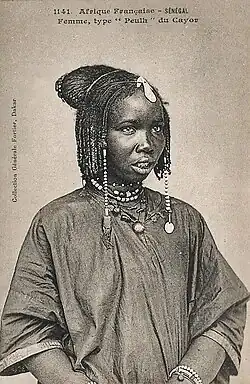 Hairstyling plays a significant role in Senegalese culture, symbolizing origins, social status, and marital status. In Senegalese society, Fulani women decorated their styled hair with beads and other accessories.[1]