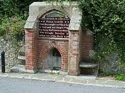 A distinctive feature of Fulking is the remains of a late Nineteenth Century water supply system. A hydraulic ram, housed in small building near the Shepherd and Dog public house, pumped water from Fulking Hill to a reservoir at the western end of the village street, where a drinking fountain and water trough were provided. The water was then fed by gravity to two further reservoirs, supplying two hand pumps along the street.[15]