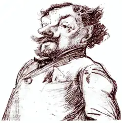 After Sapek's departure (first to government service, and then from life altogether), the main successor of the traditions of Fumism was the ″chief of the Fumists″ Alphonse Allais, an eccentric, writer, black humorist and journalist.[10] Thanks to the stories and newspaper chronicles of Allais, the purely oral artifacts of the initial period of Fumism have been preserved as facts of history, and partly as results of a purely literary level. And not only literary, but also pictorial,[9]: 32–34 and even musical.[9]: 35 Evidence (and the crowning glory) of Alphonse Allais's first literary successes was the January 1880 issue of the newspaper ″Hydropat″ entirely dedicated to him, with a caricature (not by Sapeck) on the entire cover.[1]