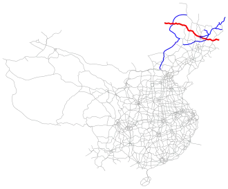 The Suifenhe–Manzhouli Expressway (Chinese: 绥芬河-满洲里高速公路), designated as G10 and commonly referred to as the Suiman Expressway (Chinese: 绥满高速公路), is an expressway that connects the cities of Suifenhe, Heilongjiang, China, and Manzhouli, Inner Mongolia. When fully complete, it will be 1,520 km (940 mi) in length. Currently, the expressway is complete in its entirety in Heilongjiang Province, from Suifenhe to just northwest of Qiqihar. The section in Inner Mongolia, from Arun Banner to Manzhouli, is in the planning stage and not yet built.[1]