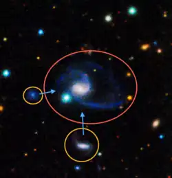 ![]() False-colour image of GAMA202627, with its two close companions highlighted. | |